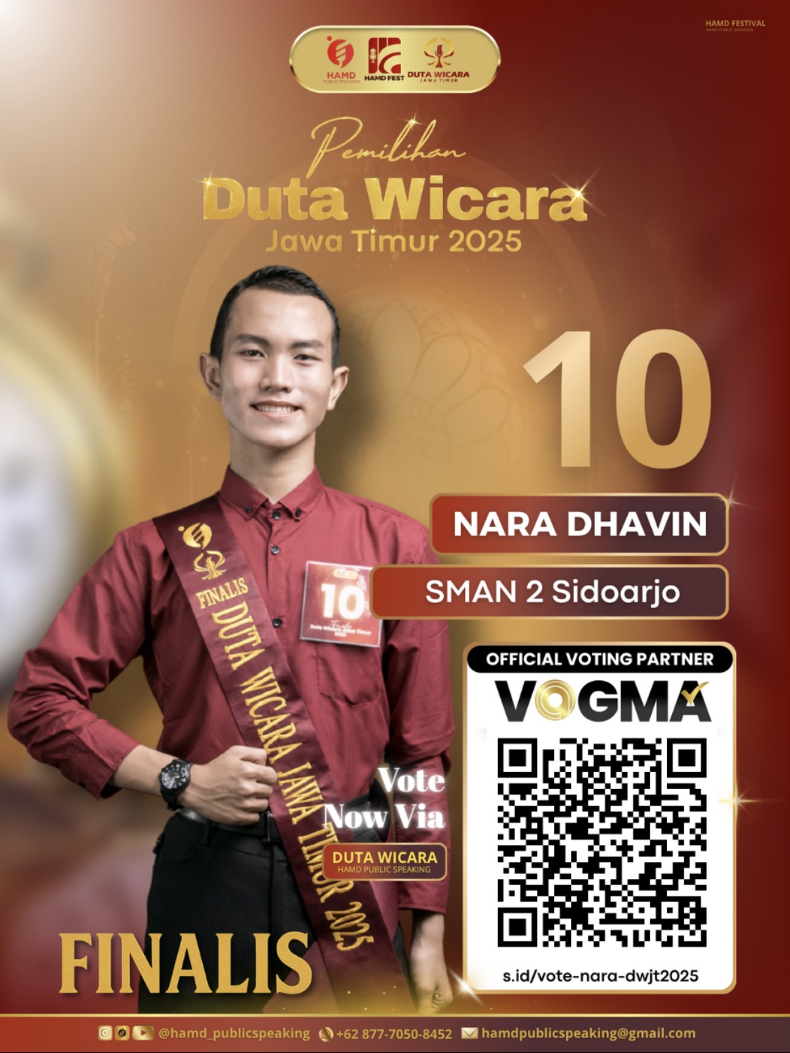 Di antara ratusan langkah yang pernah ditempuh, inilah panggung yang menuntut keberanian paling besar. Para Finalis Nara Duta Wicara Jawa Timur 2025, berdiri dengan keyakinan dan suara yang siap menggugah. Perjuangannya tidak singkat. Dipahat oleh latihan, kegigihan, dan mimpi yang tak pernah padam. Kini, dukunganmulah yang akan menentukan langkah selanjutnya. Ayo pilih Nara, dan biarkan suaramu menjadi kekuatan yang membawanya menuju puncak.